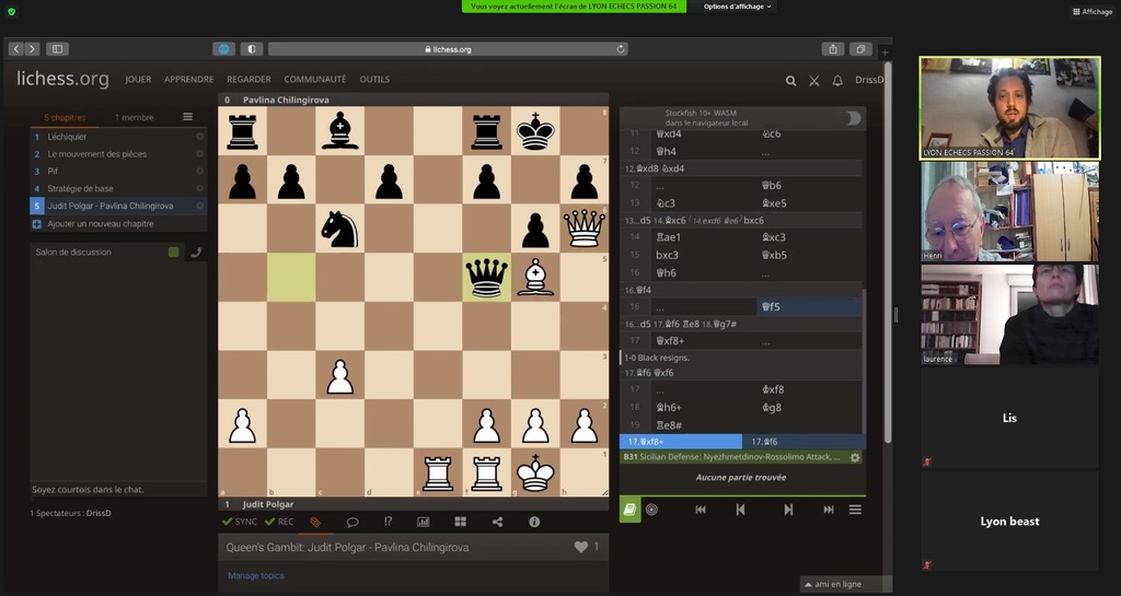 20 janvier 2021 , animée par Driss, visioconférence spéciale pour les mamans et féminines du club autour de la découverte du Jeu d’Echecs, et du succès de la série du Jeu de la Dame. On renouvèle en février , cette fois pour tous les membres du club
